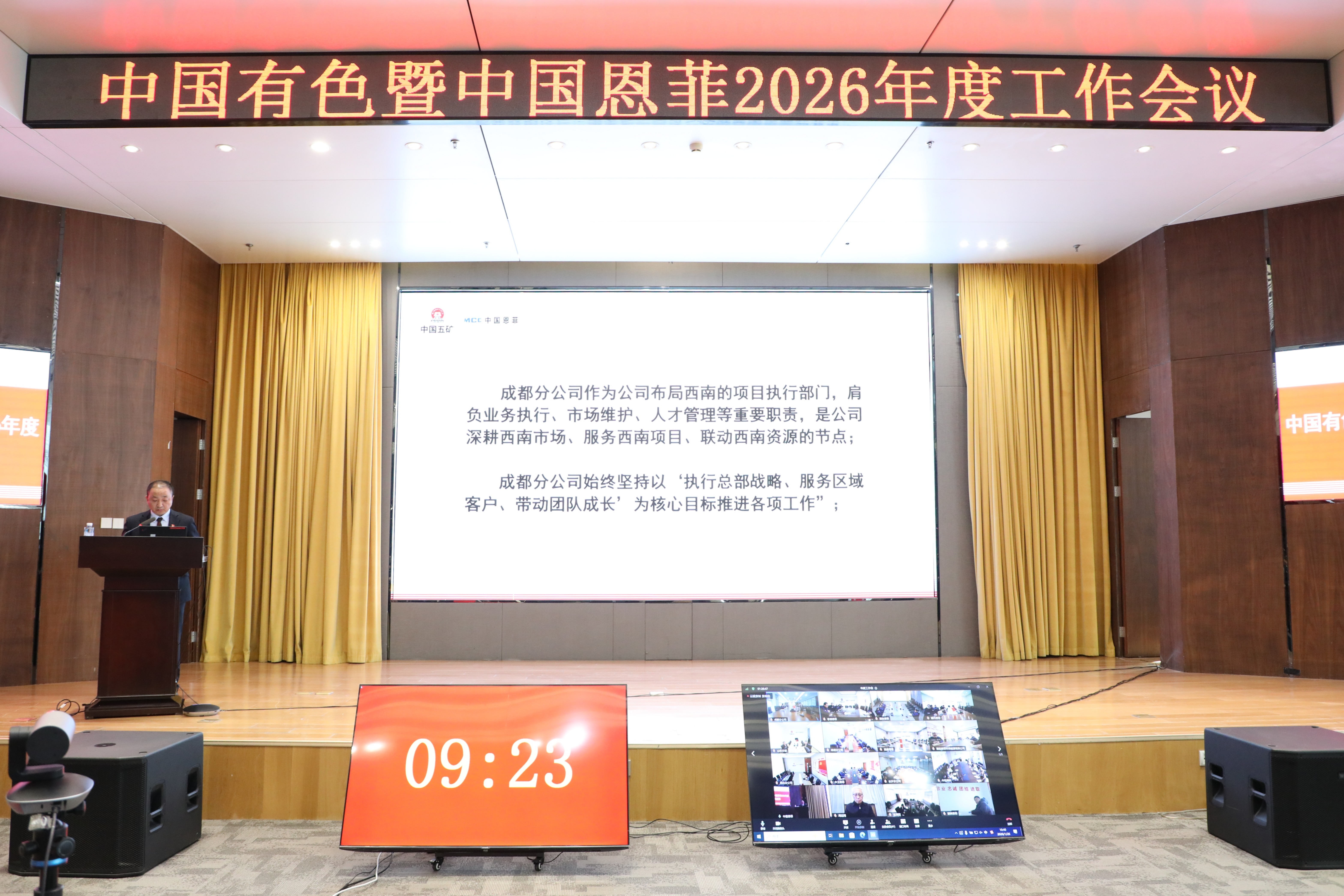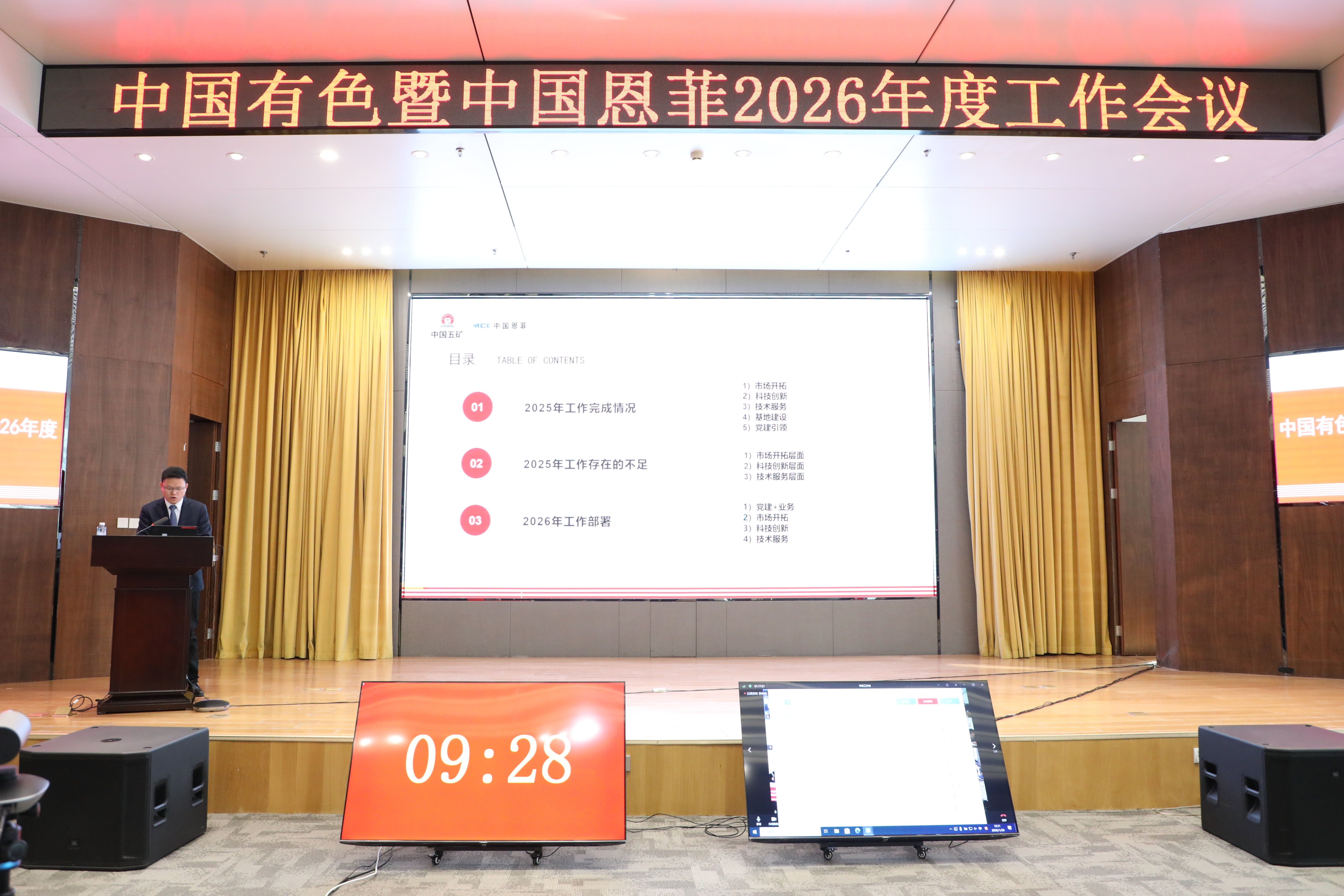 1月26日,中國(guó)有色暨中國(guó)恩菲召開(kāi)2026年度工作會(huì)議。公司黨委書(shū)記、董事長(zhǎng)劉誠(chéng)出席會(huì)議并講話(huà),黨委副書(shū)記、總經(jīng)理鮑巍作工作報(bào)告,總會(huì)計(jì)師、副總經(jīng)理張雁鏑宣讀表彰決定,黨委副書(shū)記張合文主持會(huì)議。公司外部董事視頻參會(huì),公司領(lǐng)導(dǎo)班子成員出席會(huì)議。